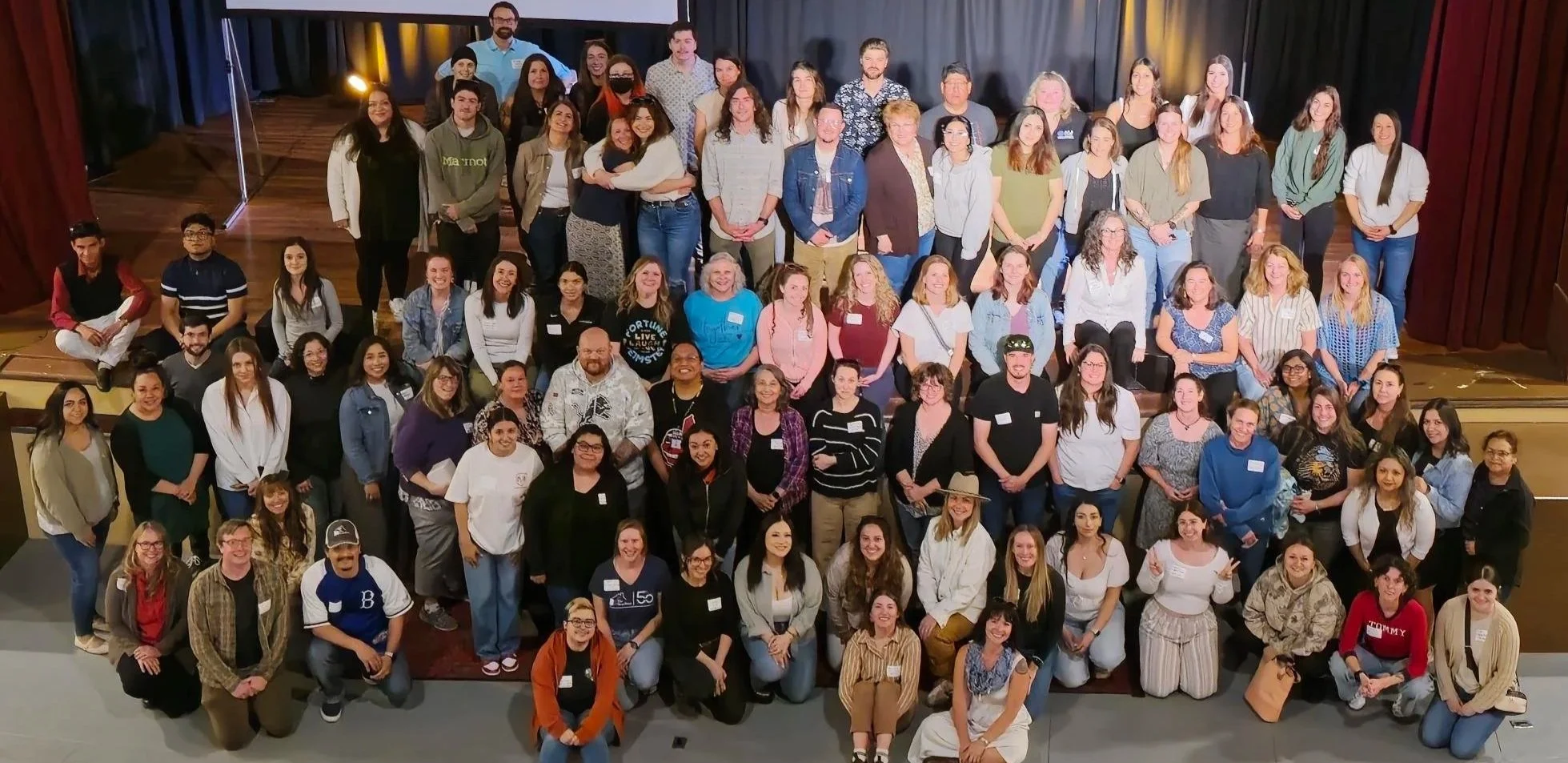 The Next Door now has over 100 full-time equivalent employees. Pictured above, staff attended an annual training focused on bystander intervention in Spring 2025 at The Dalles Civic Auditorium.